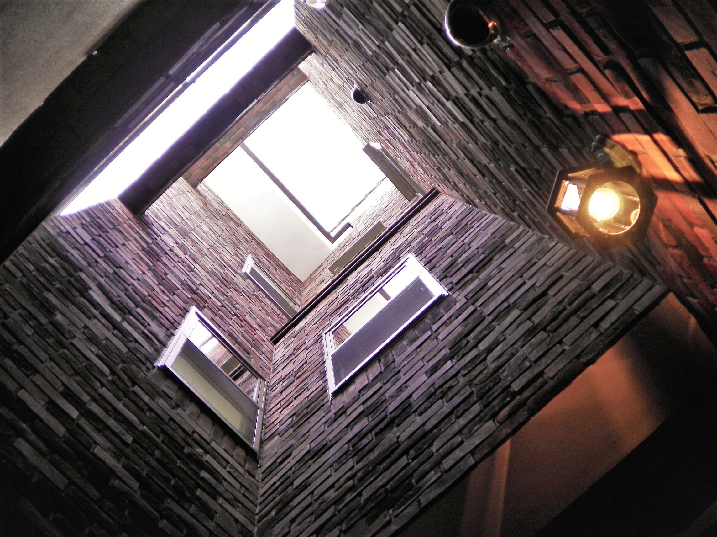 また、3階まで吹き抜ける中庭は色味の違うタイルを組み合わせて貼っています。
