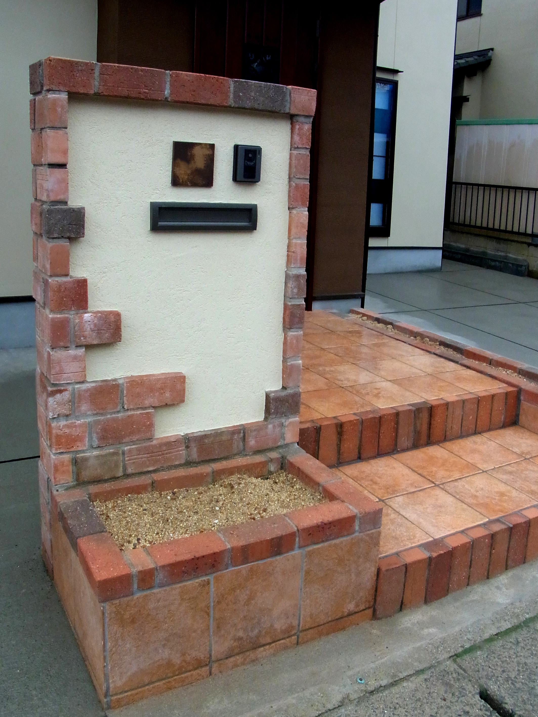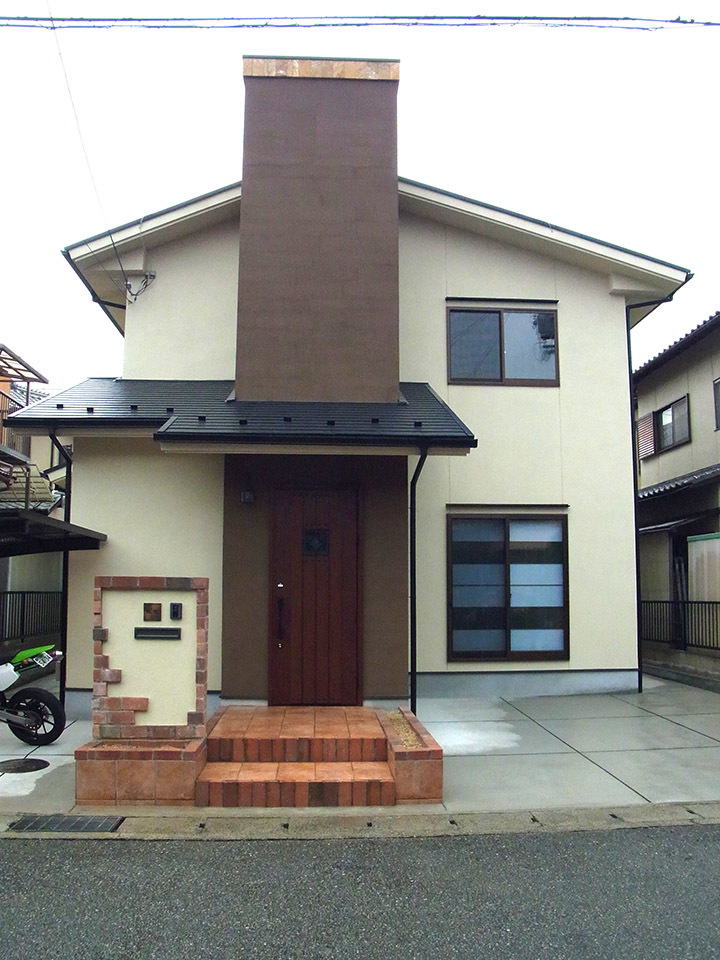 玄関と門構えに温かみを感じるレンガを使用することで、洋風なイメージにしました。