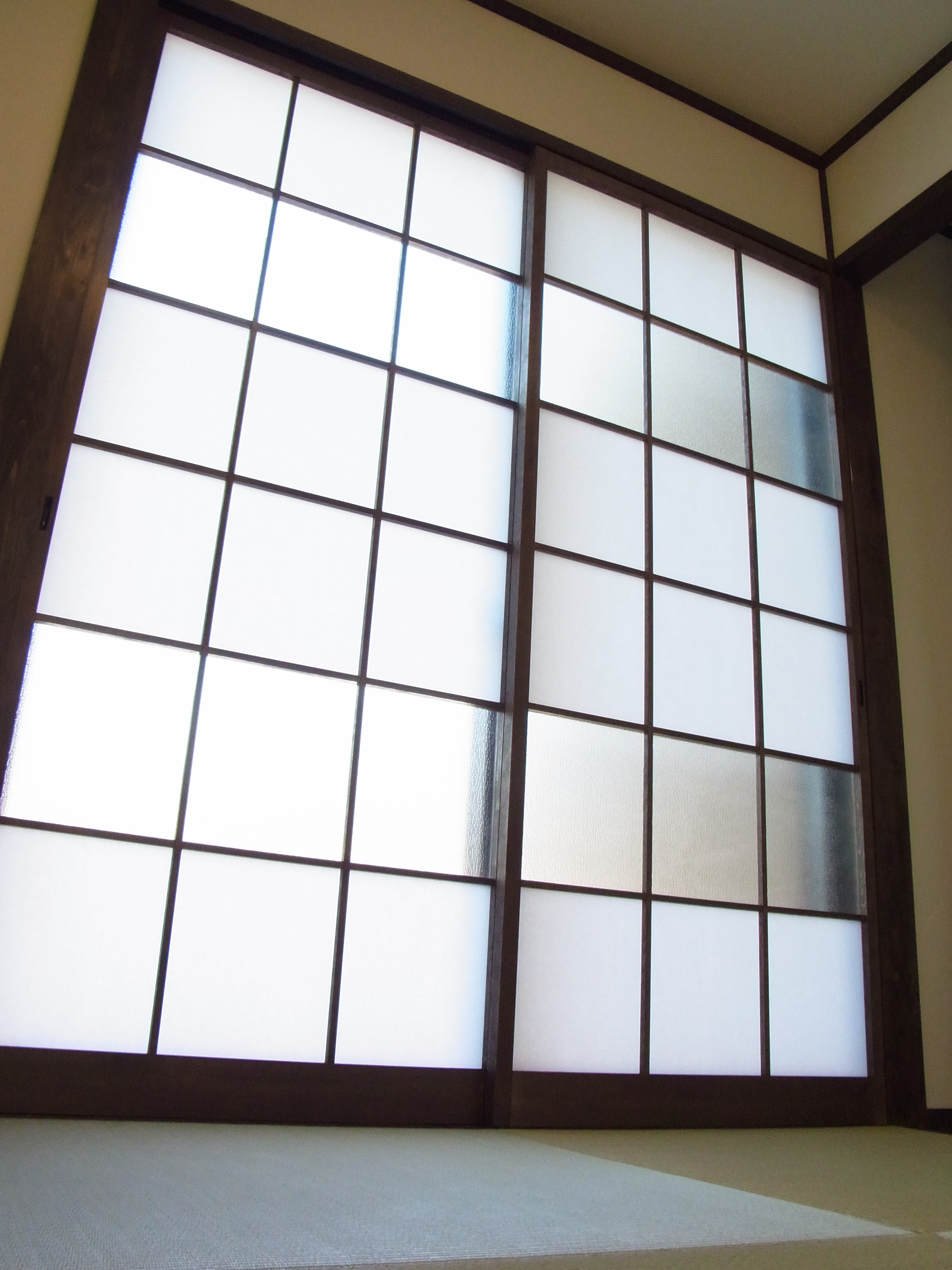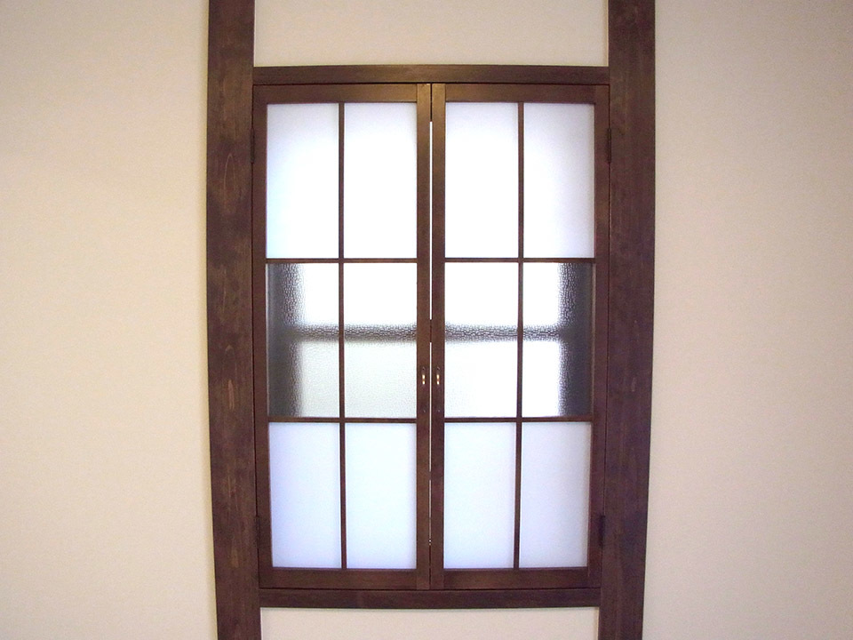 昭和のガラスを使用することでレトロ感ある建具をつくりました。