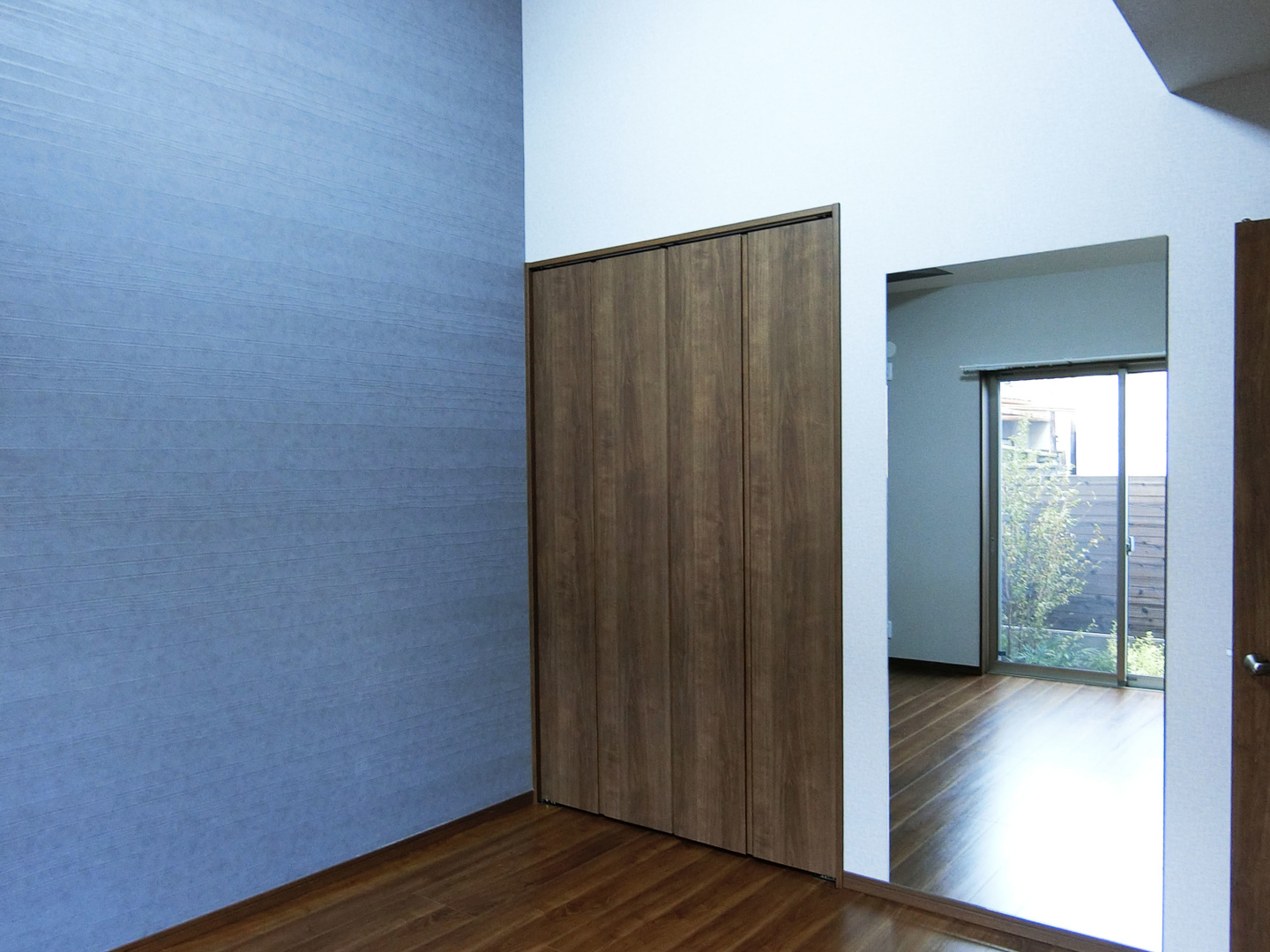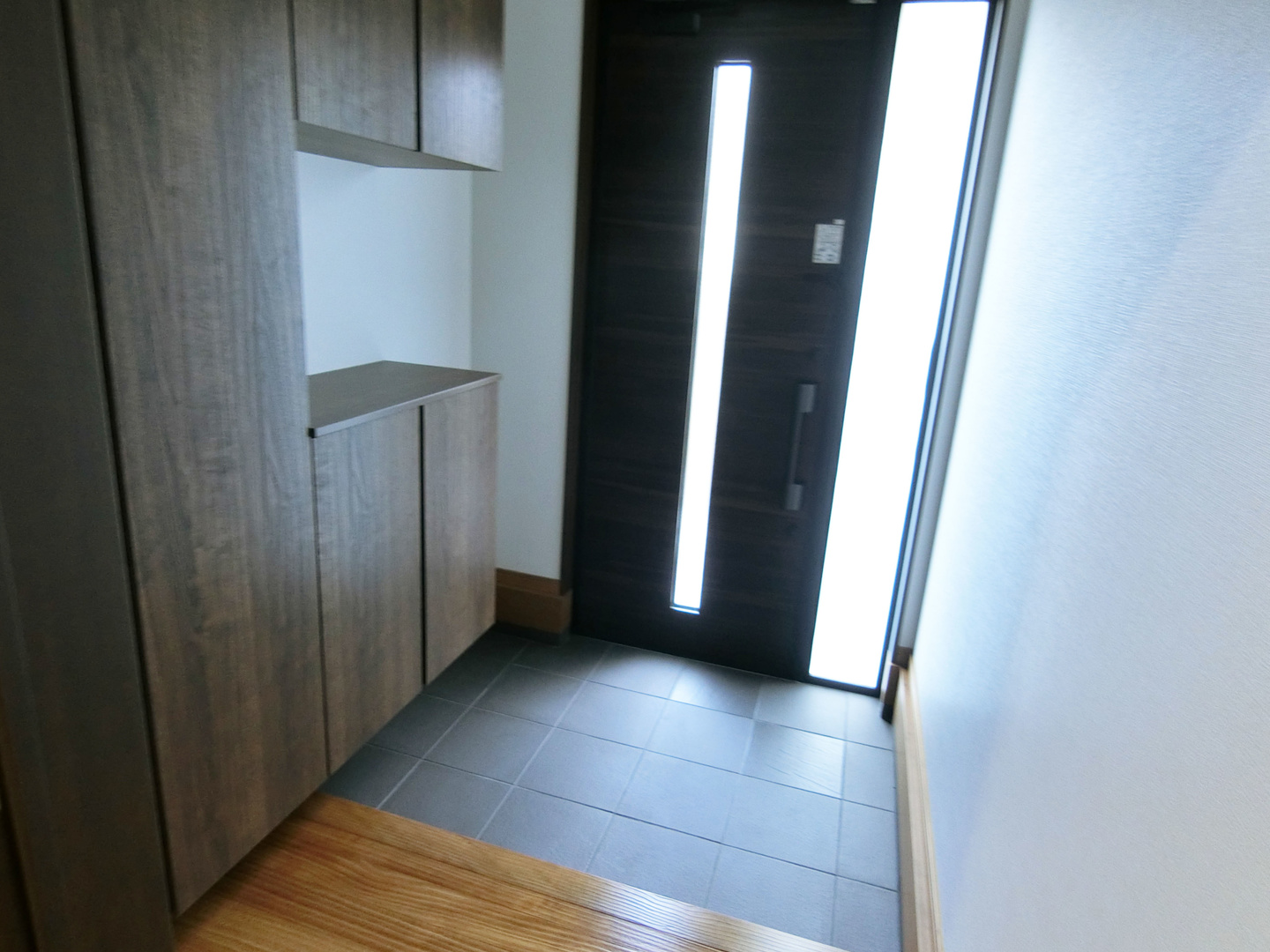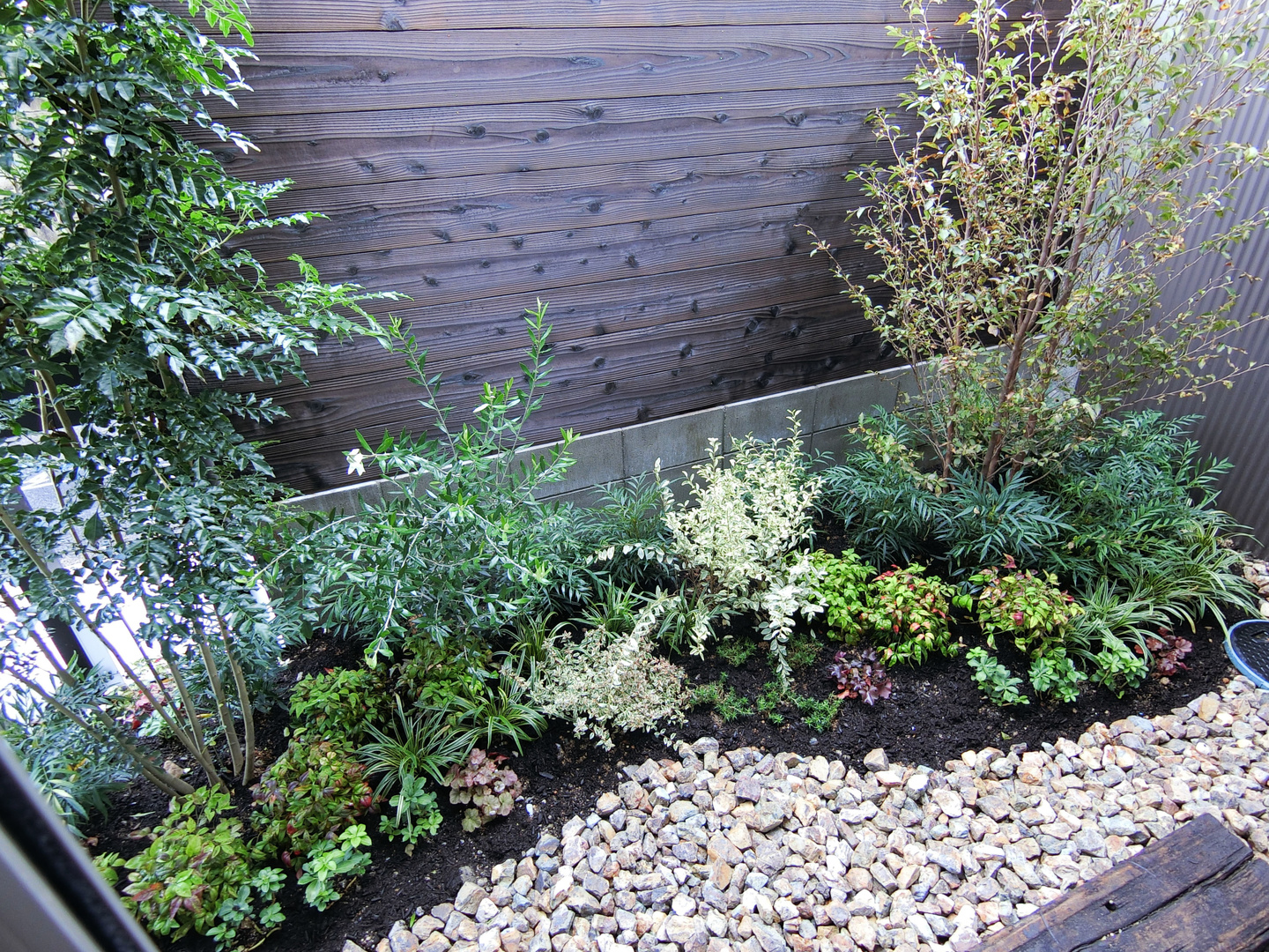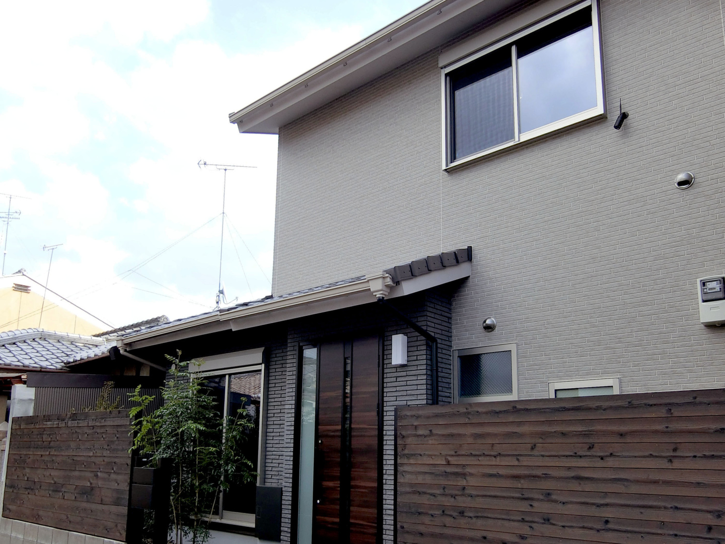 外壁の1階部分にはタイルを貼りました。2階部分はサイデイングとしましたが、ともに馴染み、庭の緑と塀の焼き板とあわさって落ち着いた良い雰囲気のイエとなりました。庭は2つあり、リビング側には広々とした芝生の庭。また観賞用の庭が表からも見えるようになっています。