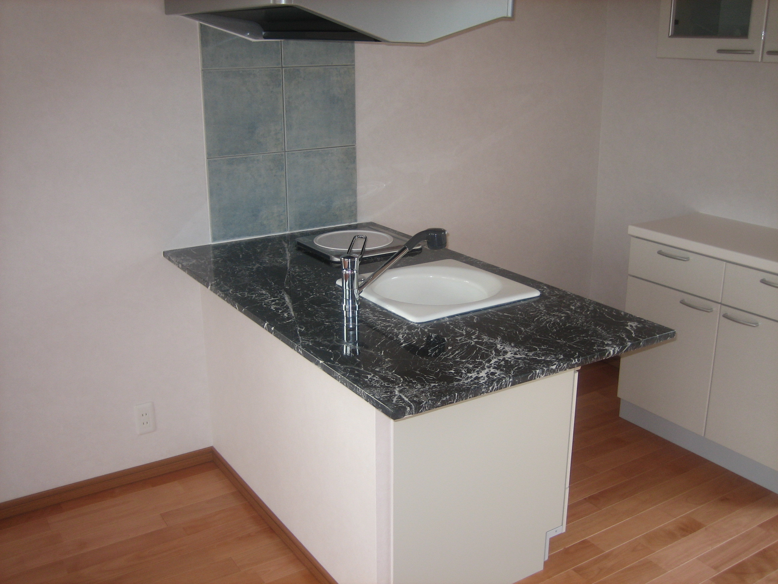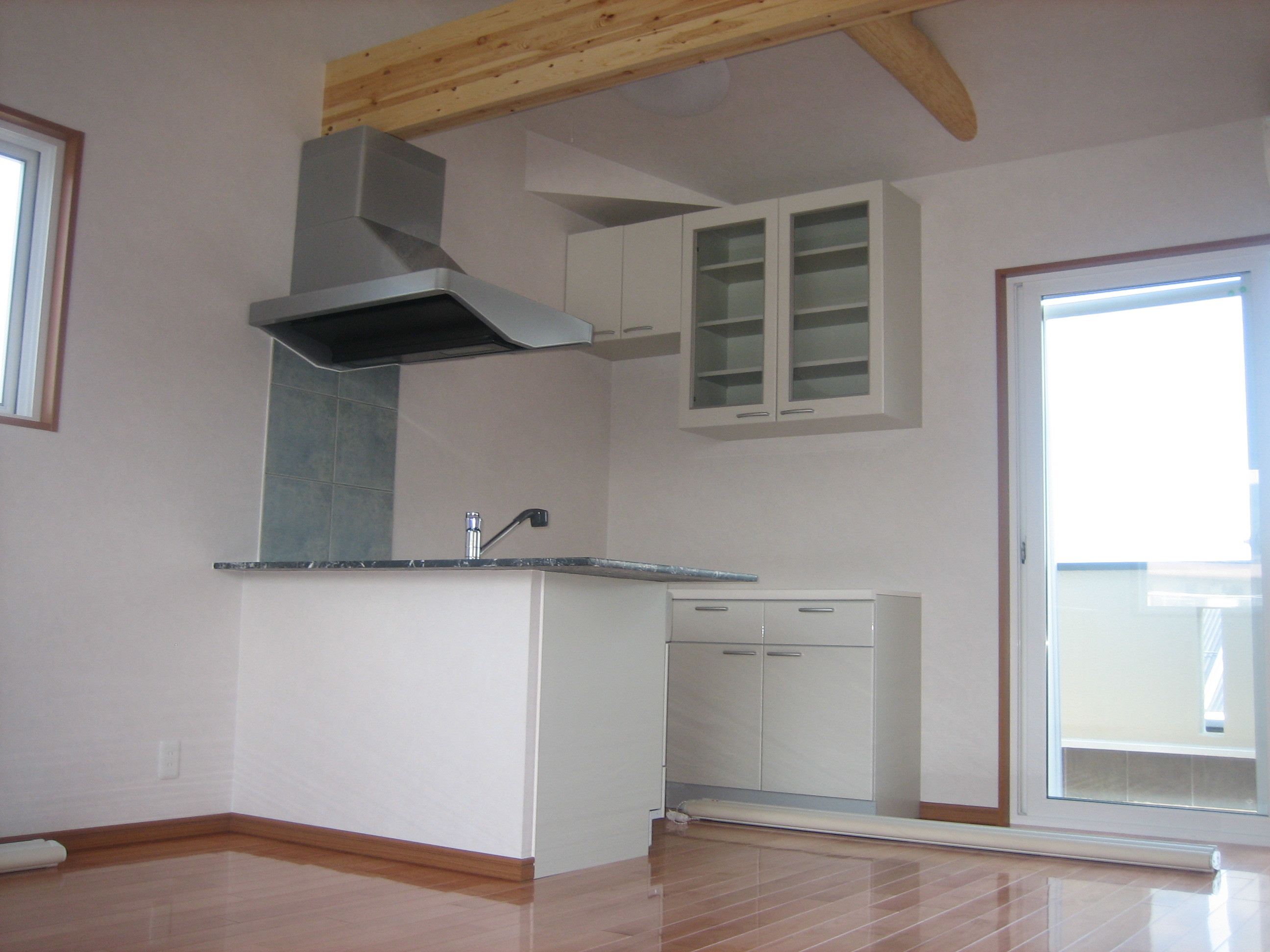 来客の際にも対応できるよう簡単なキッチンスペースも設けています。