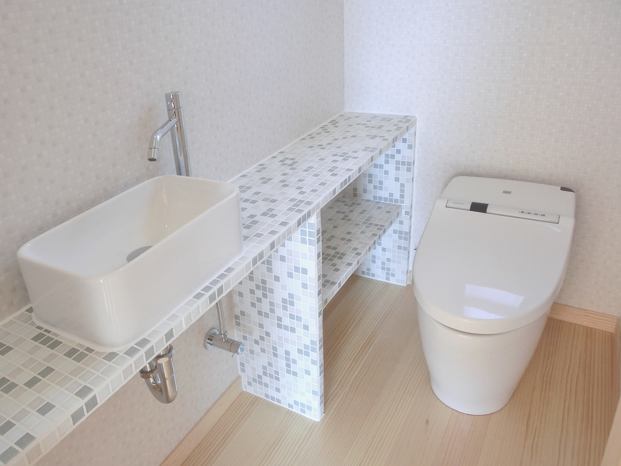 お子様が"のびのび"過ごせるような開放感のある間取りになっています。 3階建ての2階にあるリビングのフルオープン窓を開けると、 リビングからテラスまでが一続きの空間が出来上がります。 リビングの無垢の柱にはお子様の身長を記録して思い出作りができるようになっています。 また対面キッチンのダイニング上部は吹抜けになっており、インパクトのある丸太が見えます。 洗面所は家族みんなが取り合いにならないよう洗面器を2つつけて、大きな鏡をつけています。 More! もっと事例をみる 素材を楽しむイエ アクセントカラーのあるイエ 木の香りがするイエ ライトにこだわったイエ セカンドライフを楽しむイエ 2つの顔を持つイエ