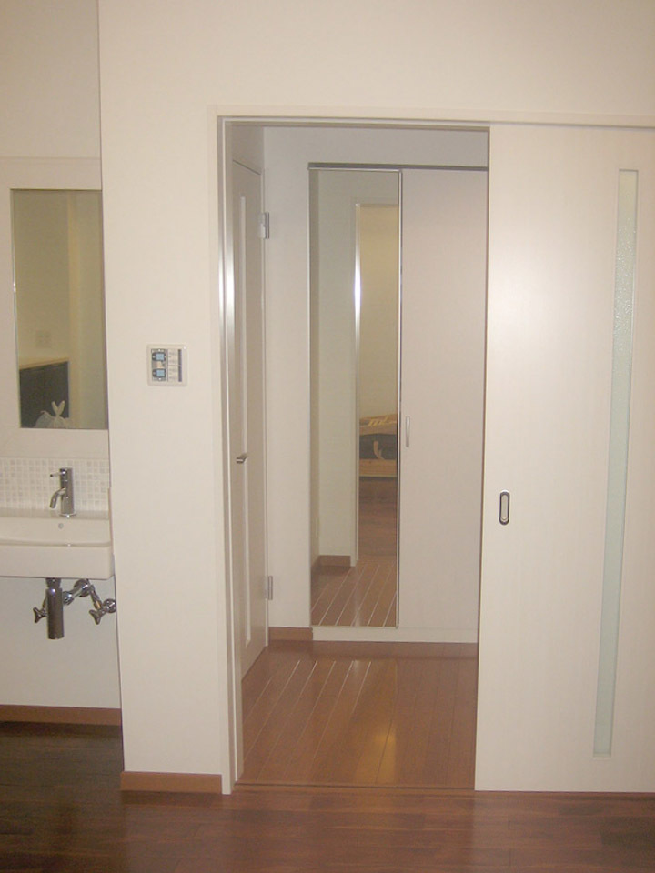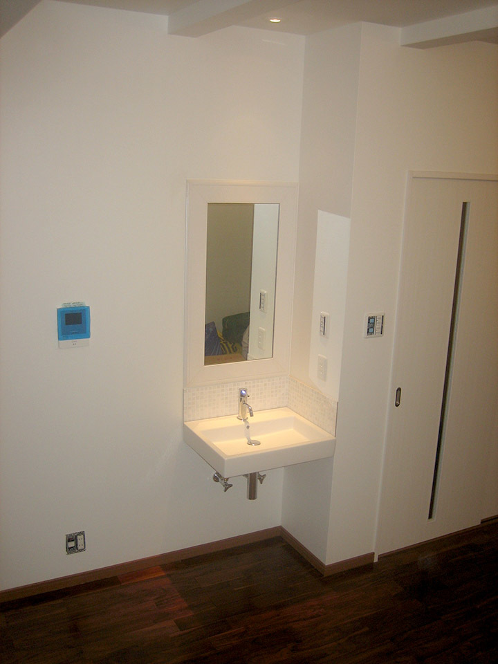 階段下のスペースや扉の横も収納や洗面として活用しています。